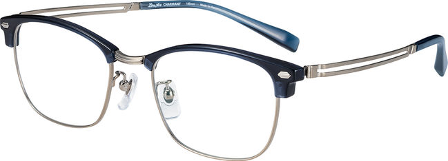 角々しくないレンズシェイプとハーフリムの特性が合わさり、爽やかな印象と信頼感も感じられるフロントデザイン。